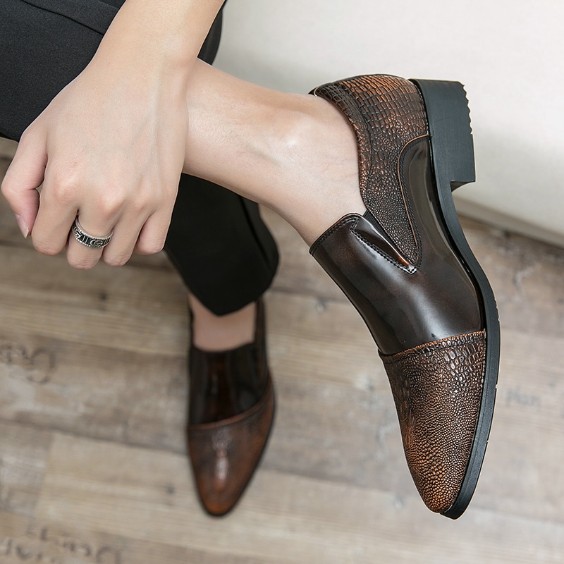 Estos mocasines de hombre de charol y goma de cocodrilo son la elección perfecta para los hombres sofisticados que buscan lujo y elegancia. Con detalles precisos en la parte superior, estos mocasines tienen un aspecto exquisito y distinguido gracias a su textura efecto piel de cocodrilo. Además, son cómodos de llevar y ofrecen un aspecto chic tanto para ocasiones formales como informales.
