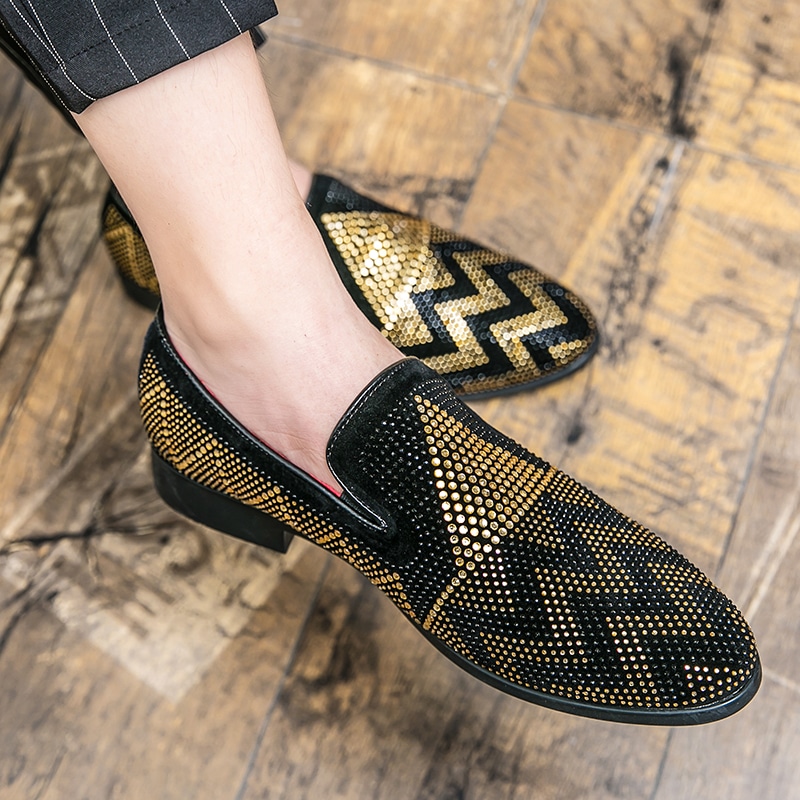 Estos mocasines negros con brillantes dorados son cómodos y duraderos. Su diseño sin cordones facilita su uso y garantiza un ajuste ceñido y cómodo. También ofrecen una buena amortiguación y agarre gracias a suela de goma antideslizante con acolchado en el interior. Así podrá llevarlos todo el día y disfrutar de sus salidas nocturnas sin que le duelan los pies.