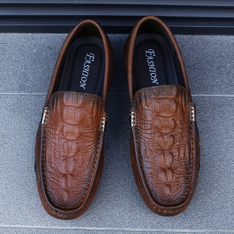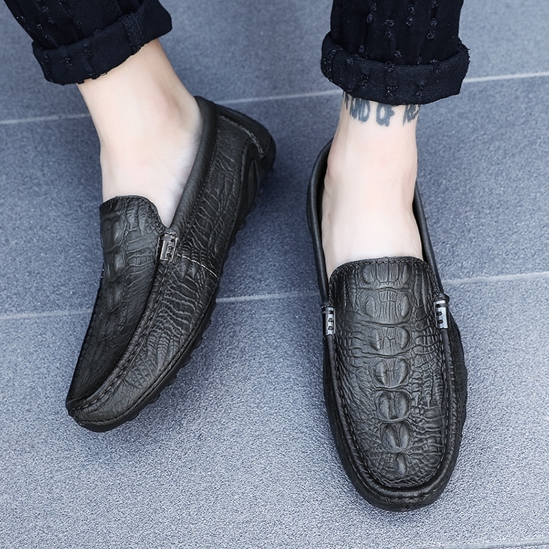 Con su exclusivo diseño estampado en cocodrilo, estos mocasines serán sin duda un complemento de moda en su colección de calzado.”