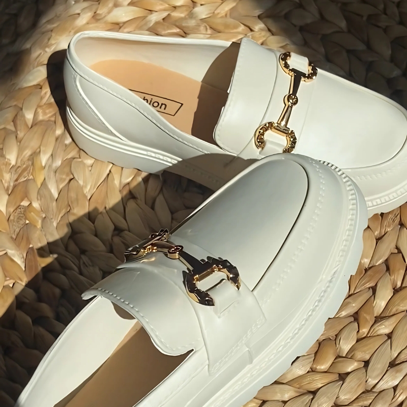 Nuestros mocasines de plataforma con cadena metálica para mujer son unos zapatos elegantes y modernos que añaden un toque de sofisticación a cualquier atuendo. Fabricados con materiales de calidad, estos mocasines ofrecen un confort óptimo. Lo que les hace perfectos para una salida nocturna elegante o una ocasión especial.