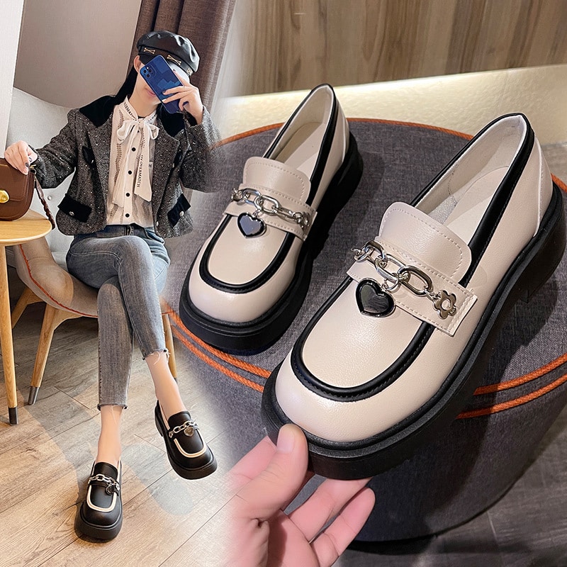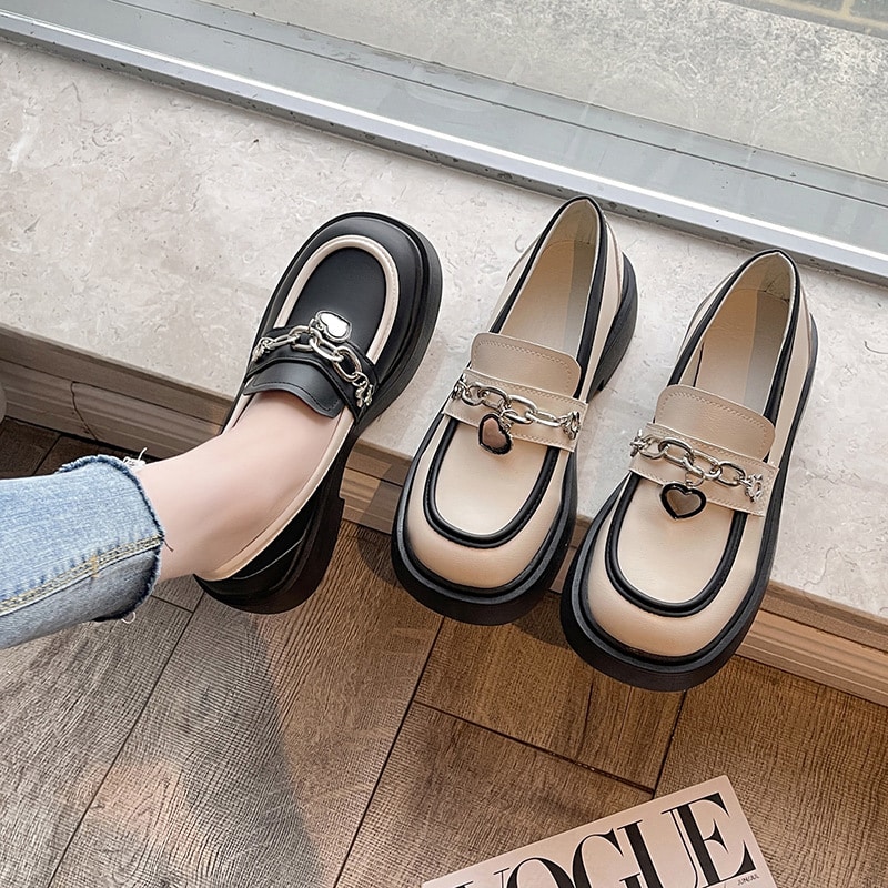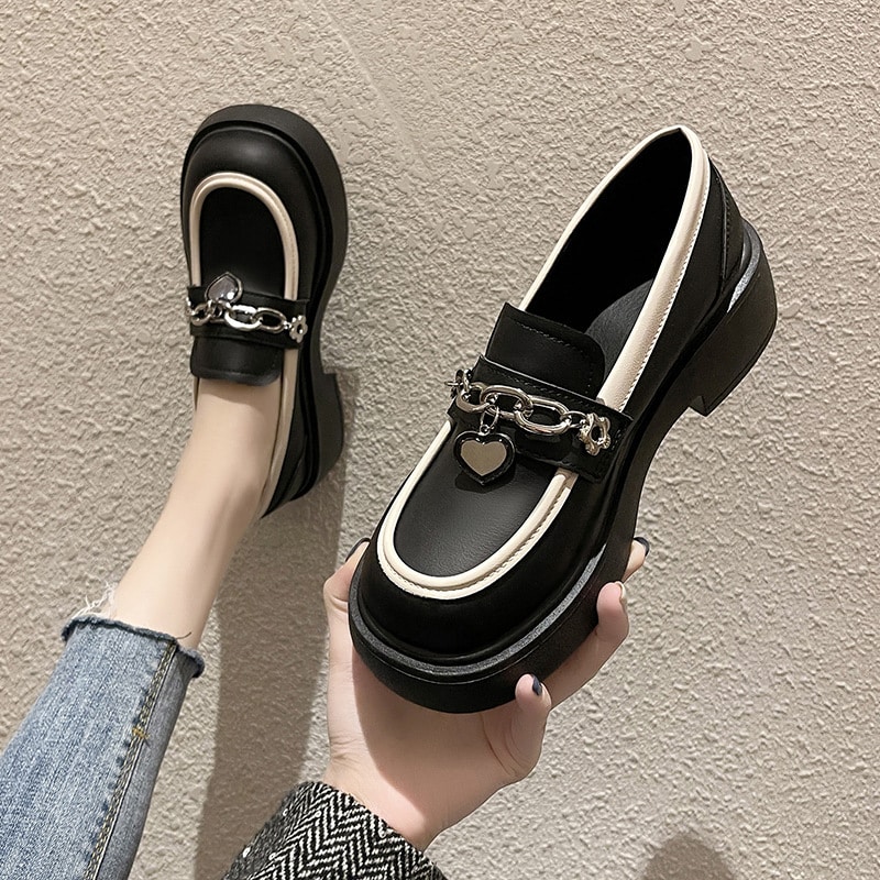 Estos mocasines de estilo británico para mujer son el accesorio perfecto para añadir un toque de sofisticación y elegancia a su vestuario. Con su delicada cadena y su colgante en forma de corazón, estos zapatos de plataforma son ideales para esos momentos en los que desea lucir un estilo chic pero cómodo. Elija ahora la talla que más le convenga.