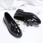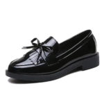 Tanto si lo combinas con unos vaqueros informales para un look casual chic como con una falda elegante para una ocasión más formal, este mocasín de charol con flecos y lazo se presta a cualquier ocasión.
