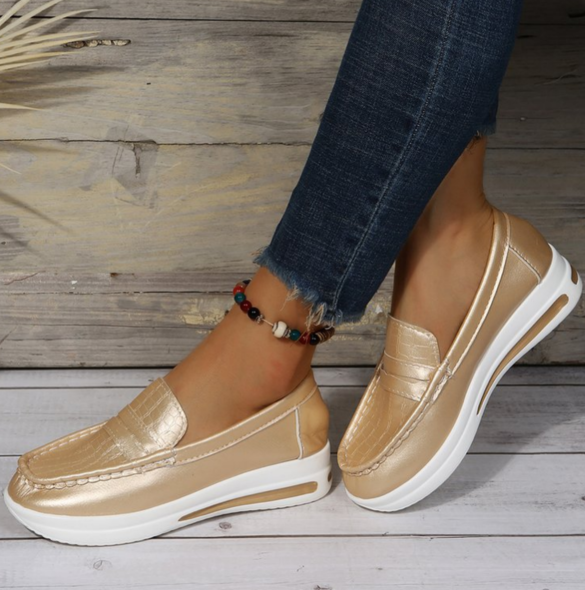 Estas zapatillas están diseñadas con una gruesa suela de goma que ofrece una excelente amortiguación y un agarre óptimo en todas las superficies. La altura de la plataforma es ideal para añadir una centésima de metro a su altura sin dificultar la marcha durante todo el día. Con su diseño desenfadado y la comodidad que ofrecen a sus pies, estas mocasines se convertirán rápidamente en un básico de su armario.