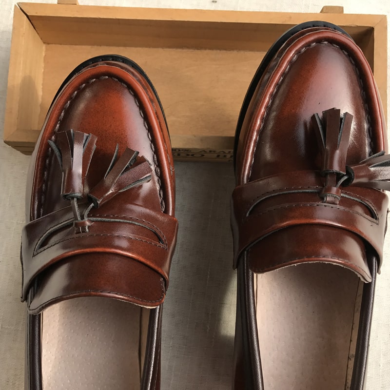 Los mocasines tienen un acabado liso o brillante que llama inmediatamente la atención. Este diseño clásico también se ve acentuado por las costuras cuidadosamente ejecutadas en la parte delantera, que añaden un toque extra de elegancia.