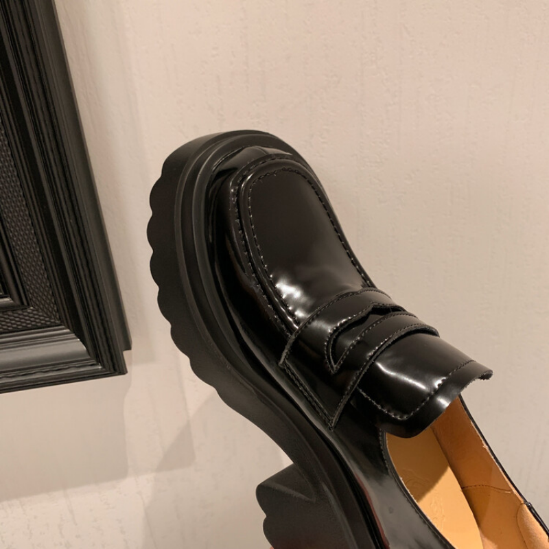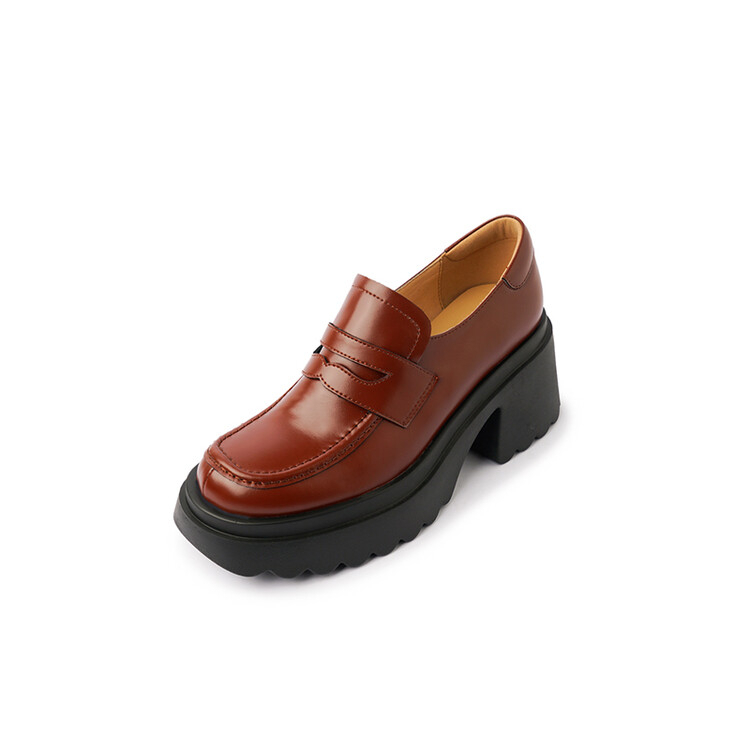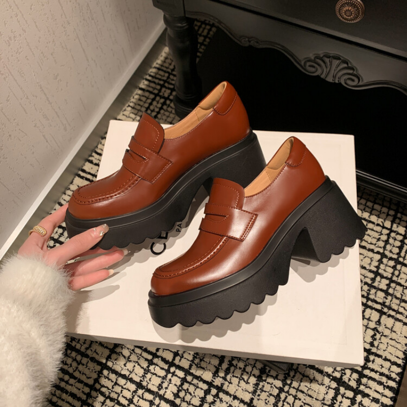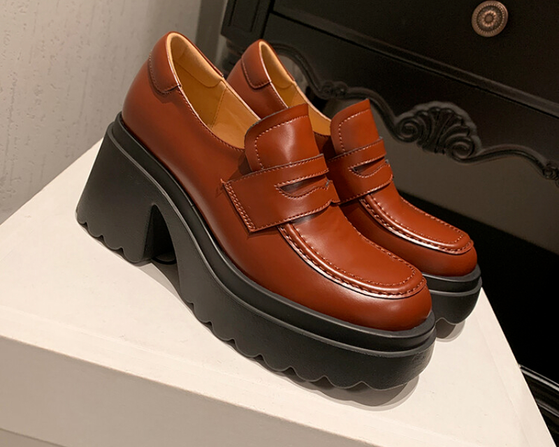 El diseño atemporal de los mocasines se ve realzado por un tacón de plataforma que añade un toque atrevido y moderno al conjunto.
